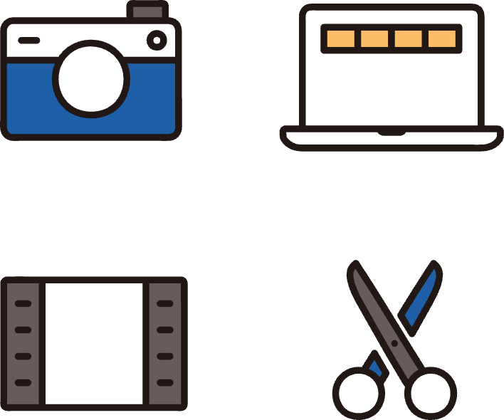 企業紹介動画・サービス説明動画・不動産物件紹介動画・SNS用ショート動画などを企画から編集まで対応。目的に合わせた構成設計で、視覚的に伝わるコンテンツを制作します。YouTubeへのアップロードや自社HP等への掲載まで、運用面もしっかりとサポートいたします。